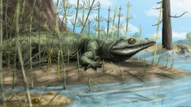 ![]() قدّم اكتشاف جديد في البرازيل لحفرية حيوان زاحف يعود تاريخها إلى 250 مليون عام نظرة "استثنائية" عن الحياة قبيل ظهور الديناصورات. وفي ذلك الوقت، كان العالم يتعافى من موجة انقراض جماعية قضت على غالبية الكائنات الحية. ويُعتبر الزاحف، ويطلق عليه اسم "Teyujagua" أو "السحلية الشرسة"، الأقرب إلى فصيلة من الحيوانات انحدرت منها ديناصورات وتماسيح وطيور. ويقول العلماء إن الحفرية الجديدة "رائعة" وتسد فجوة مهمة في تطور الكئانات الحية. وقال ريتشارد بتلر، من جامعة برمنغهام، إن الحيوان الذي عثر على حفريته نوع جديد لم يُكتشف من قبل. وقال المؤلف المشارك في الدراسة المنشورة في دورية "سينتفيك ريبورتس"، لبي بي سي، إن الحيوان "قريب للغاية من أسلاف مجموعة مهمة من الزواحف" تعرف باسم "archosauriforms". وأضاف أنه "يساعدنا في فهم كيفية تطور ذلك النوع". "جمجمة جميلة" وكان "تيوجاغوا بارادوكسا" حيوانا صغيرا يشبه التمساح، وكان يعيش على الأرجح على ضفاف البحيرات ويتغذى على الأسماك. ![]() وعاش بعد فترة قصيرة من موجة الانقراض الجماعي قبل 252 مليون سنة التي يعتقد بأنها نجمت عن مجموعة من الثورات البركانية. وقُضي حينها على قرابة 90 في المئة من الكائنات الحية. وأصبحت الزاحف، والأنواع القريبة منها "archosauriforms"، الحيوانات السائدة على الأرض آنذاك وأدت في النهاية إلى ظهور الديناصورات. وكان الدكتور فيليب بينيرو، من جامعة "فيدرال دو بامبا"، من بين علماء ثلاث جامعات برازيلية اكتشفوا جمجمة الحفرية بالقرب من جنوب مدينة ساو فرانسيسكو دي أسيس. واعتبر بينيرو اكتشافها أمرا "مذهلا حقا". وأضاف أنه "منذ أن رأينا تلك الجمجمة الجميلة لأول مرة، وكانت لا تزال مغطاة بالصخور، أدركنا أننا نملك شيئا مذهلا بين أيدينا". وقال إنه "بعد العودة إلى المختبرات والكشف عن العظام، تجاوزت الحفرية توقعاتنا". وتختلف حفرية "Teyujagua" عن الحفريات الأخرى التي اكتشفت في المنطقة ذاتها. ويشير تشريح الحفرية إلى أنها تقع بين زواحف أكثر بدائية وزواحف الـarchosauriforms التي تشمل كل الديناصورات والديناصورات الطائرة، إلى جانب طيور وتماسيح في العصر الحديث. http://www.bbc.com/arabic/scienceand...fossil_reptile |