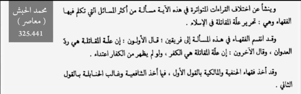 ![]() وهذه الايه سببت جدل فقهي في هذه الكارثه بين المصاحف المختلفه القراءه : ![]() فيا ترى انت تتبني اي مصحف منهم ..؟! هل المصحف الذي يقول القتال لرد العدوان ام مع المصحف الاخر الذي يقول بقتال الكفار لمجرد انهم كفار ..؟! هل تعي حجم كارثة اختلاف المصاحف المختلفه ام لا ترد ان تراها..؟! اقتباس: