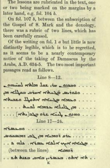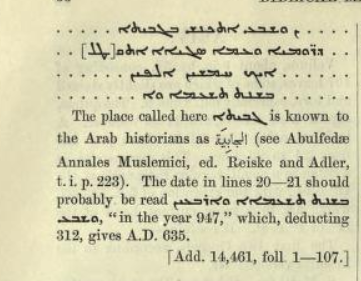 ![]() يدعي المسلمون بالكذب انها تحوي اسم محمد وان اسمه ذكر في مخطوطه لانجيل متى ومرقص وهذا كذب متعمد بينما الحقيقة انها ملاحظة مكتوبة بخط أحد الكتاب السريان الذي كان ينسخ الأنجيل ، وهذه الملحوظة ذكرت هجوم العرب على دمشق وأخذها من يد البيزنطينيين بعد هزيمتهم..وأول من ذكر هذا هو Wright خلال تبويبه للمخطوطات السريانية الموجودة في المتحف البريطاني.. طبيعي هذه المخطوطة قديمة وفيها اجزاء غير واضحة ومختلف على فحواها... لكن بالبحث في الكتاب الذي قام Wright بكتابته وهو التبويب الذي قام به للمخطوطات السريانية، فأننا لا نقرأ كلمة محمد على الأطلاق باللغة السريانية...ولا يوجد ذكر لمحمد! هذا الجزء الاول من المخطوط رقم 14461 المكتوب بالسريانية..ولا يوجد اي شيء عن محمد بالسريانية : ![]() وهذا الجزء في الصفحة الثانية...وايضا لا يوجد اي كلمة محمد بالسريانية!!! ![]() يقول الكاتب : This much faded note appears to have been penned soon after the battle of Gabitha (AD 636), at which the Arabs inflicted a crushing defeat on the Byzantines. The words ‘we saw’ (line 13: the alternative reading is also in the first person plural) are positive evidence that the author was a contemporary. He speaks of olive oil, cattle (?) and ruined villages, aspects of the invasion important to a native of peasant stock, but never reported by the Arab sources. If he was a peasant who could write, he was probably a monk or a parish priest. His purpose in jotting this note in the book of the Gospels was probably purely commemorative. He seems to have realized how momentous the events of his time might be. The note is preserved on fol. 1 of BL Add. 14,461, a codex containing the Gospel according to Matthew and the Gospel according to Mark; it has been edited most recently by E. W. Brooks in CM 2, p. 75. The surviving traces are here indicated and annotated in a way that is avoided elsewhere in this book. In addition to the published observations of Noldeke, ‘Zur Geschichte der Araber’, and Brooks, this translation draws on an improved reading of the text by S. P. Brock, which has not been published. Syriacists who want to check the translation must be enabled to do so; and, although the Syriac letters themselves leave non-Syriacists none the wiser, the overall impression that the text is very fragmentary and many of its readings disputable will serve the useful purpose of making them more cautious in formulating any argument they may base on it. الكاتب لا يقول ان القصة المذكورة هي جزء من متى ومرقس كما يدعي المسلمون كذبا ان اسم محمد مكتوب فيهم .. لكن هذه ملحوظة كتبها الناسخ بالارامية/السريانية على هامش نسخه للأنجيل .. فهي تتحدث عن غزو للقرى وتدمير زيوت الزيتون والماشية .. وهو جزء من الغزو العربي لسوريا .. وعلى الاكثر الناسخ هو راهب او كاهن لابرشية .. ويعزو سبب ذكره لهذه الملحوظة هو الحدث الجلل الذي كان في وقتها اي يقصد الغزو (بطبيعة الحال انجيلي متى ومرقس لا يوجد فيهما اي نص يتحدث عن اي غزو ولهذا فالكلام هو عن ملحوظة كتبها ناسخ الانجيل على الهامش) وليس كما يحاول المسلمون الكذب بان اسم رسولهم مكتوب على مخطوطات للانجيل ..! والملاحظة المكتوبة في الهامش بجانب الكلمة التي يقولون انها محمد هي : {Syr. MWHMD}. ومكتوب ملاحظة عليها : Brock, who has reexamined the manuscript, finds this word ’very uncertain’; yet Brooks prints M[W]HMD, without showing that it is a doubtful reading. |